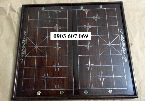 Bàn cờ gỗ gụ được gắn 2 bản nền bằng đồng chắc chắn