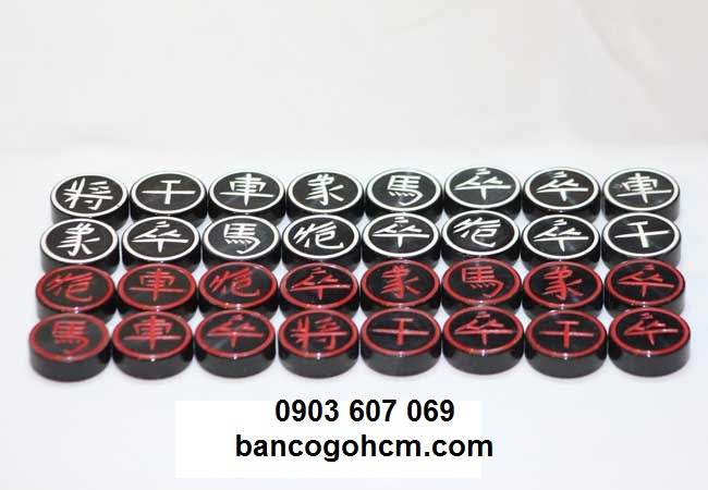 bộ quân cờ tướng sừng trâu cực đẹp, cực tốt, cực bền được tiện thủ công bằng tay rồi đục mặt quân, sơn, và đánh bóng quân bằng mô tơ phớt.